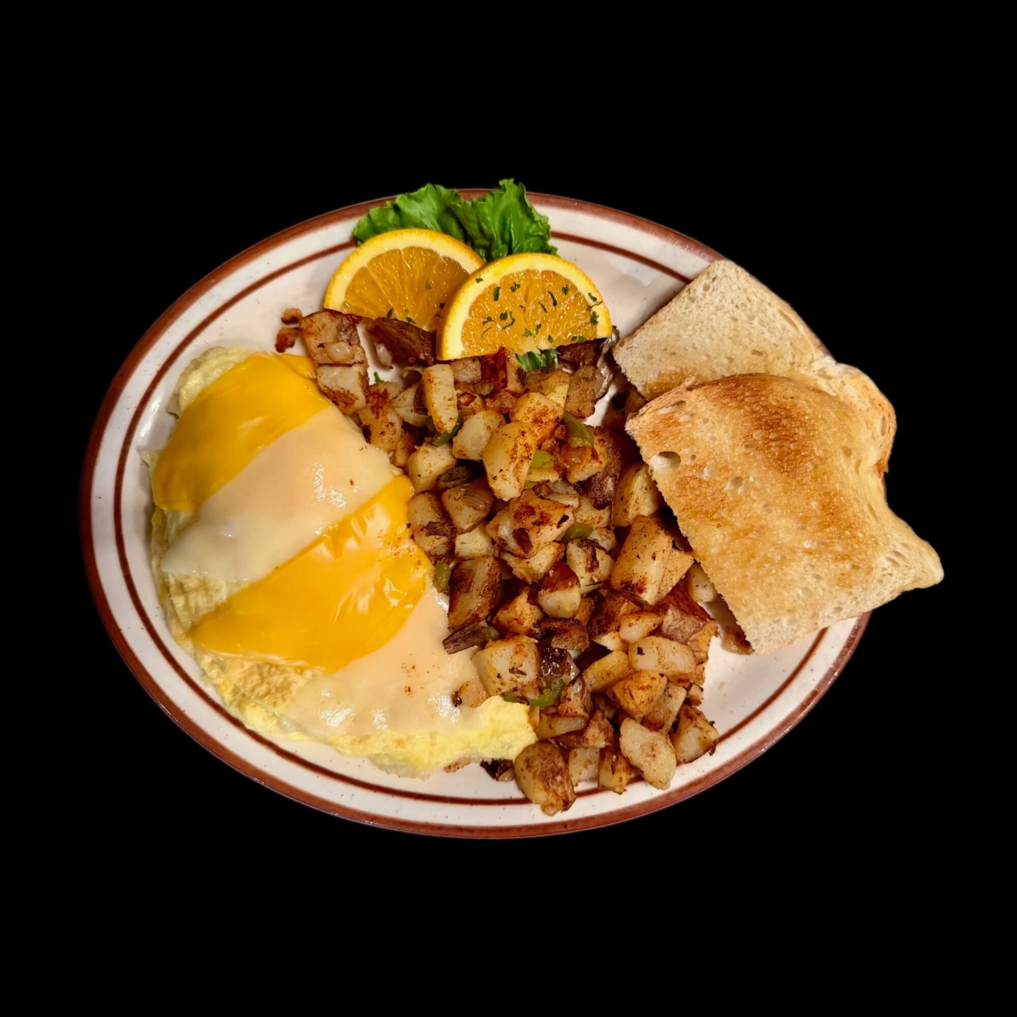 Choice of bacon, ham or sausage and potatoes, toast & jelly.