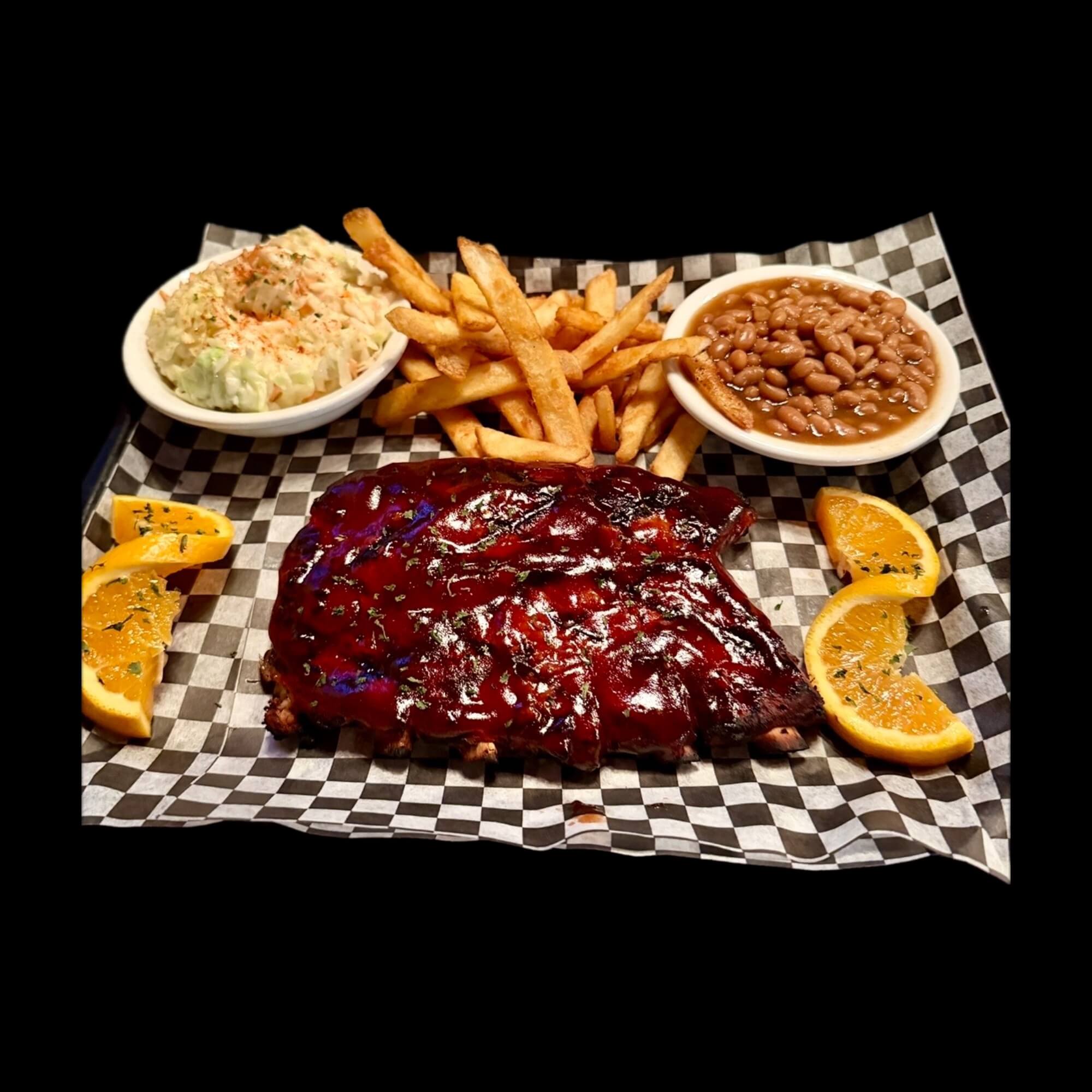 ½ pound patty with bacon, American cheese, onion rings & BBQ sauce.